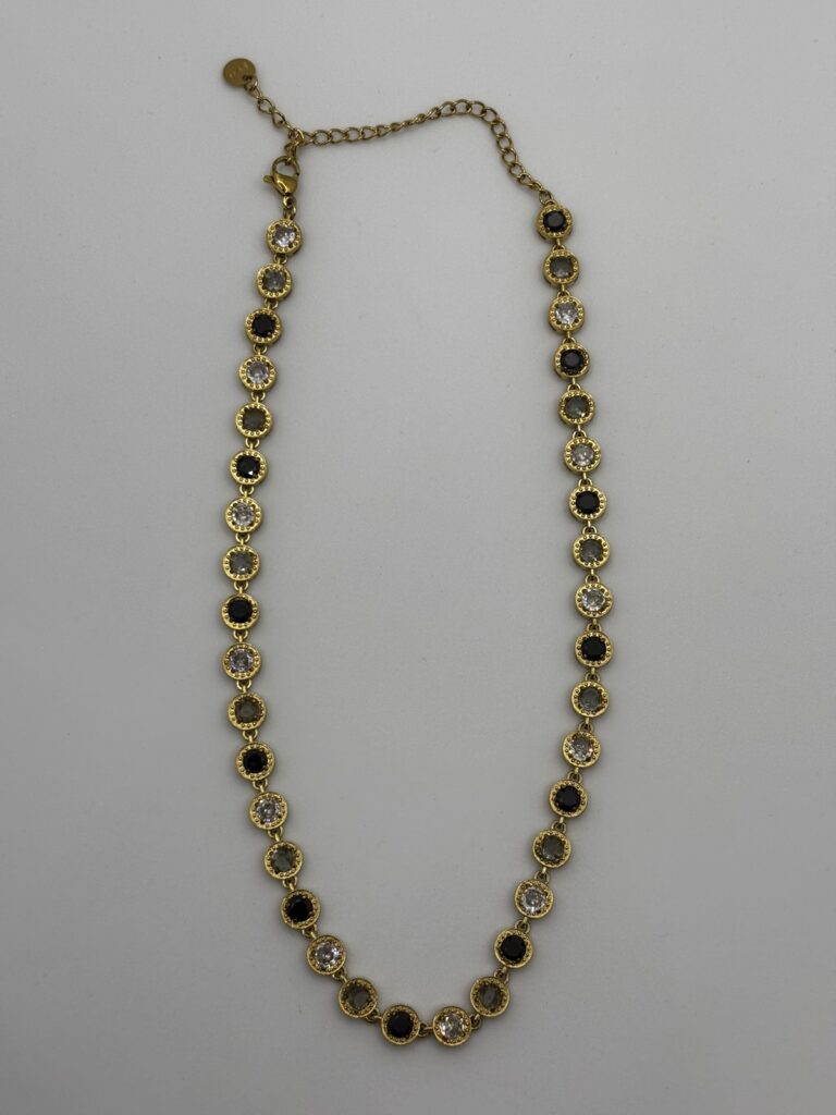 Το Floral Radiance Necklace είναι ένα εκλεπτυσμένο κολιέ από stainless steel, διακοσμημένο με λαμπερά λουλουδένια μοτίβα γεμάτα ζιρκόν. Η λεπτομέρεια στη σχεδίαση του χαρίζει διακριτική πολυτέλεια και διαχρονική λάμψη, ενώ το ανθεκτικό υλικό εξασφαλίζει ότι θα παραμείνει εντυπωσιακό χωρίς να μαυρίζει. Ένα elegant statement κομμάτι για κάθε εμφάνιση, από καθημερινή μέχρι βραδινή.